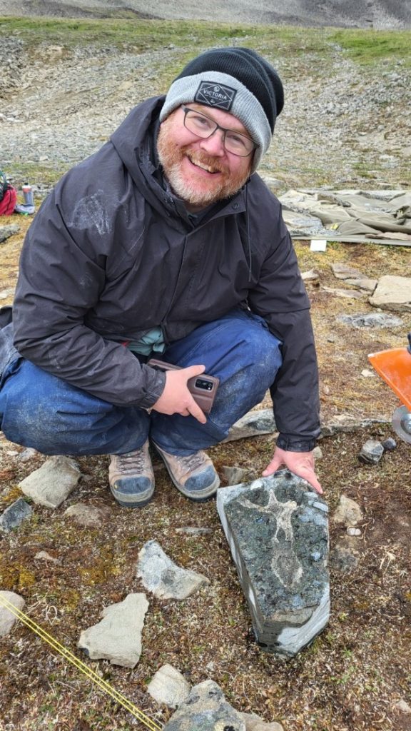 The fossil collection at the museum covers more than 500 million years of the history of British Columbia. It’s a record that stretches as far back as 1.6 billion years when we include some very special rocks called stromatolites from the mountains of southeastern BC, which were formed by cyanobacteria and other photosynthetic microorganisms. Highlights from the collection include the weird and wonderful animals of the Burgess Shale, strange fishes and marine reptiles from Triassic-aged rocks in northeastern BC, a huge collection of Cretaceous marine invertebrates from eastern Vancouver Island, thousands of delicately-preserved 52-million-year-old plants and insects from the McAbee Fossil Beds, 30-million-year-old whales from southwestern Vancouver Island, and the mammoths that called different parts of British Columbia home during the Ice Age. And, near and dear to my heart, a small but growing collection of dinosaurs from across British Columbia, based on fieldwork my team and I have conducted since my arrival at the museum in 2018. The palaeontology collection is also home to Buster the Ferrisaurus, the first example of a dinosaur species unique to BC. Researchers use the fossils in the collection to identify species new to science, learn about the weird and wonderful adaptations of extinct organisms, and understand how plants and animals evolve (or go extinct) when their environments change.